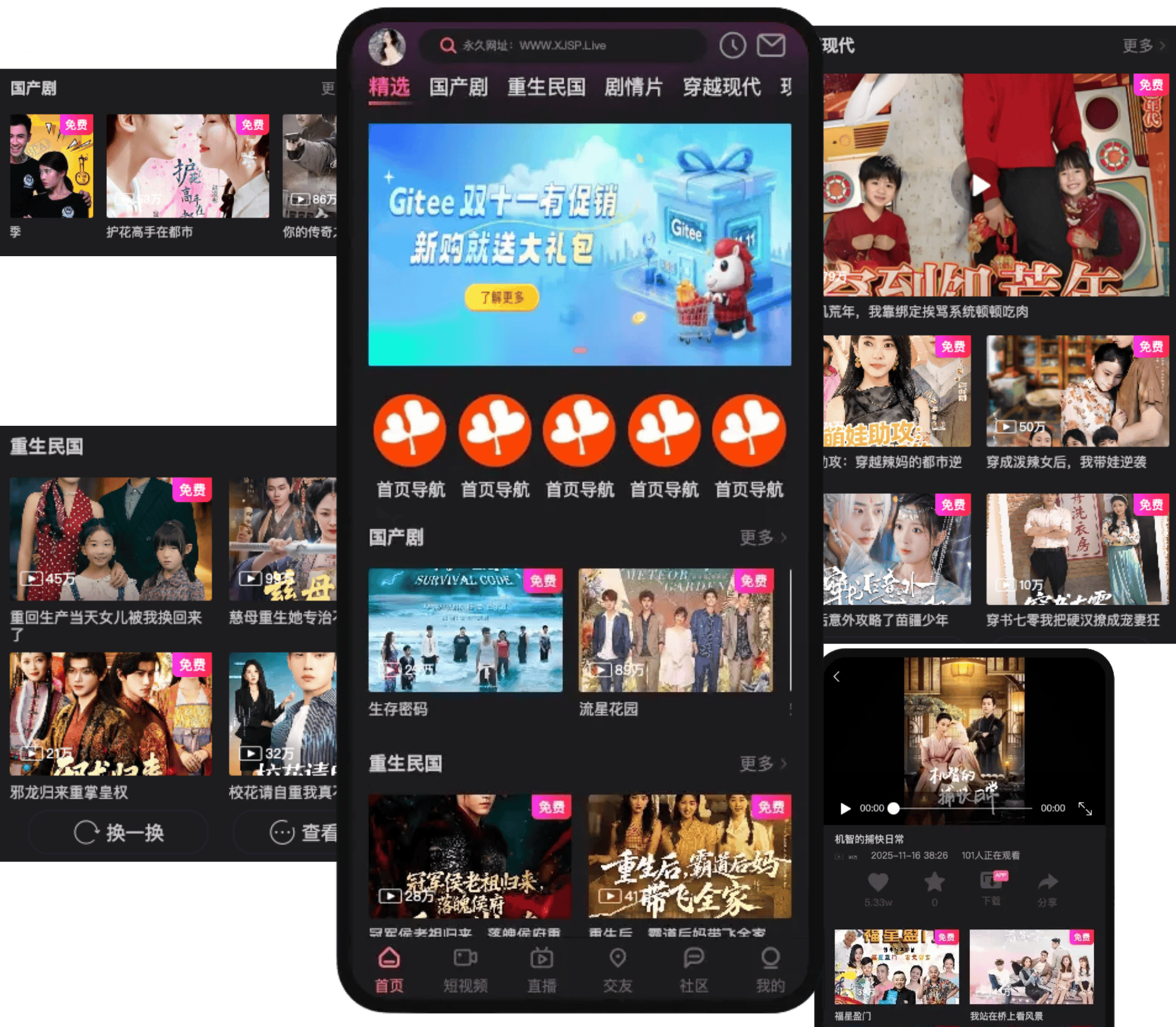 可付费定制短视频,社区,直播,交友的采集规则等。