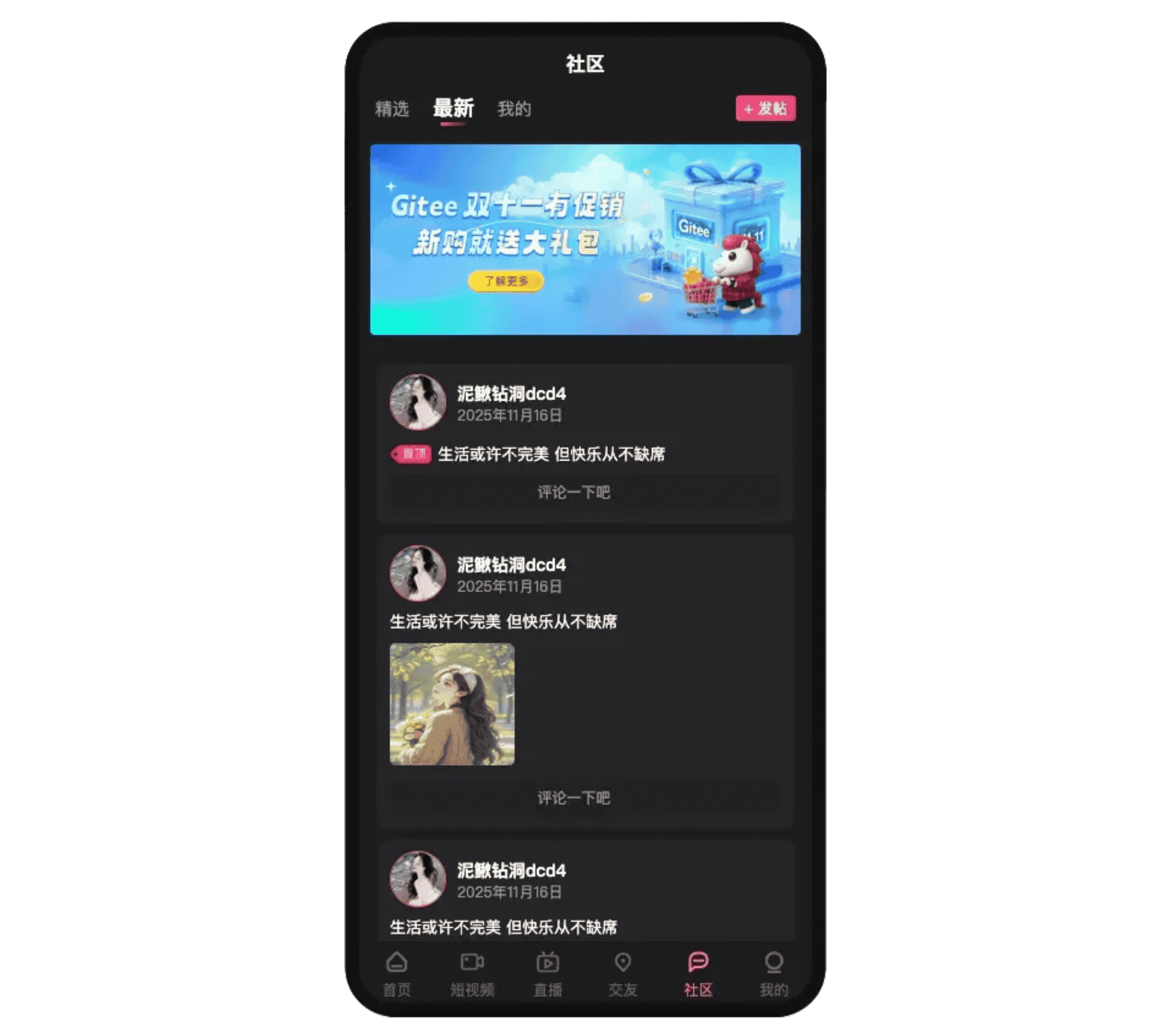 提供帖子、评论、点赞、话题标签等功能,助力构建高活跃度的社区氛围。