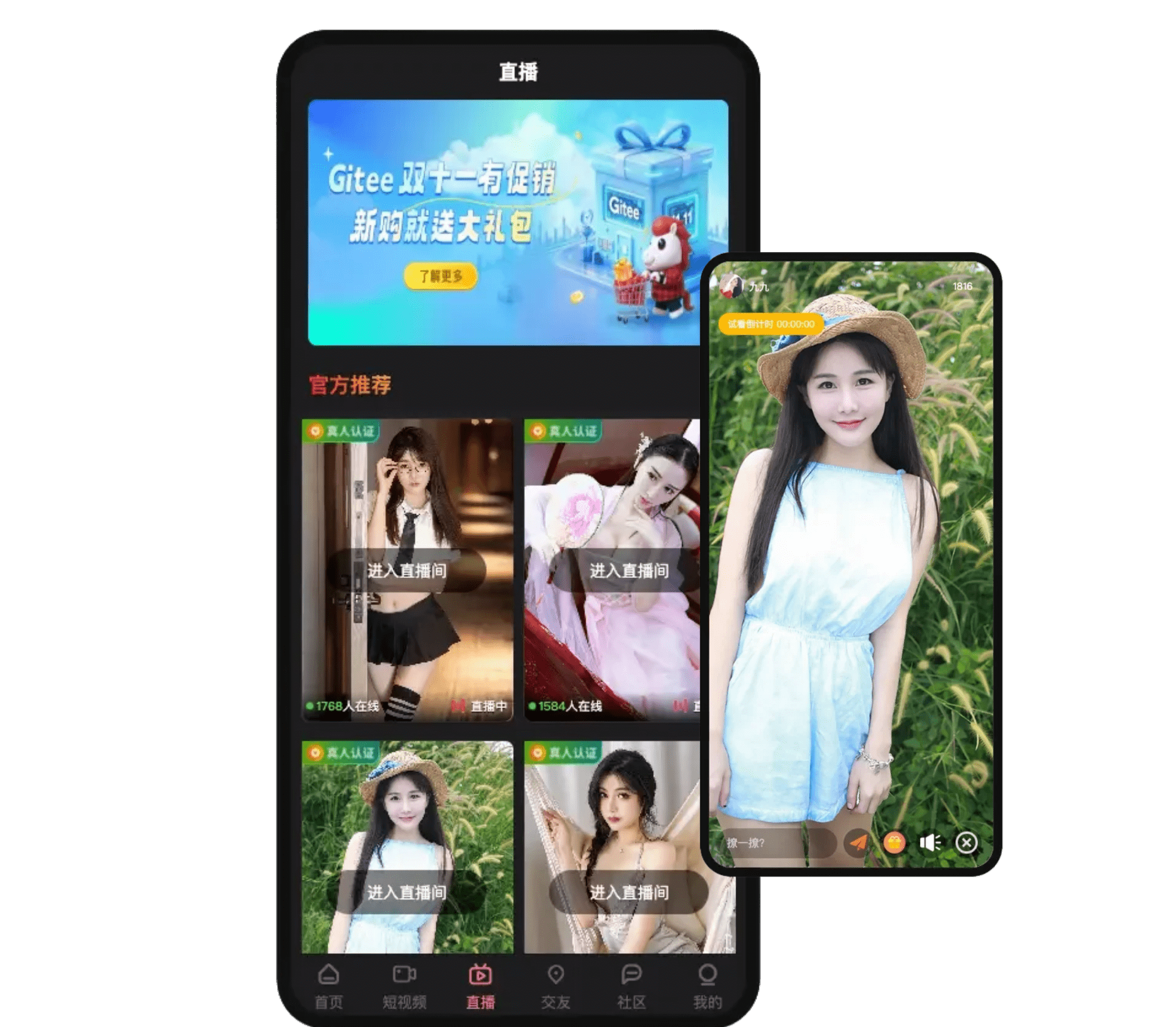 APP可自动生成直播/长视频的在线用户,直播列表同步到直播间,并且会缓存人数以及列表和进入同步模拟人数递增递减,达到每次进入都是不一样的人数而且偏差不会大。